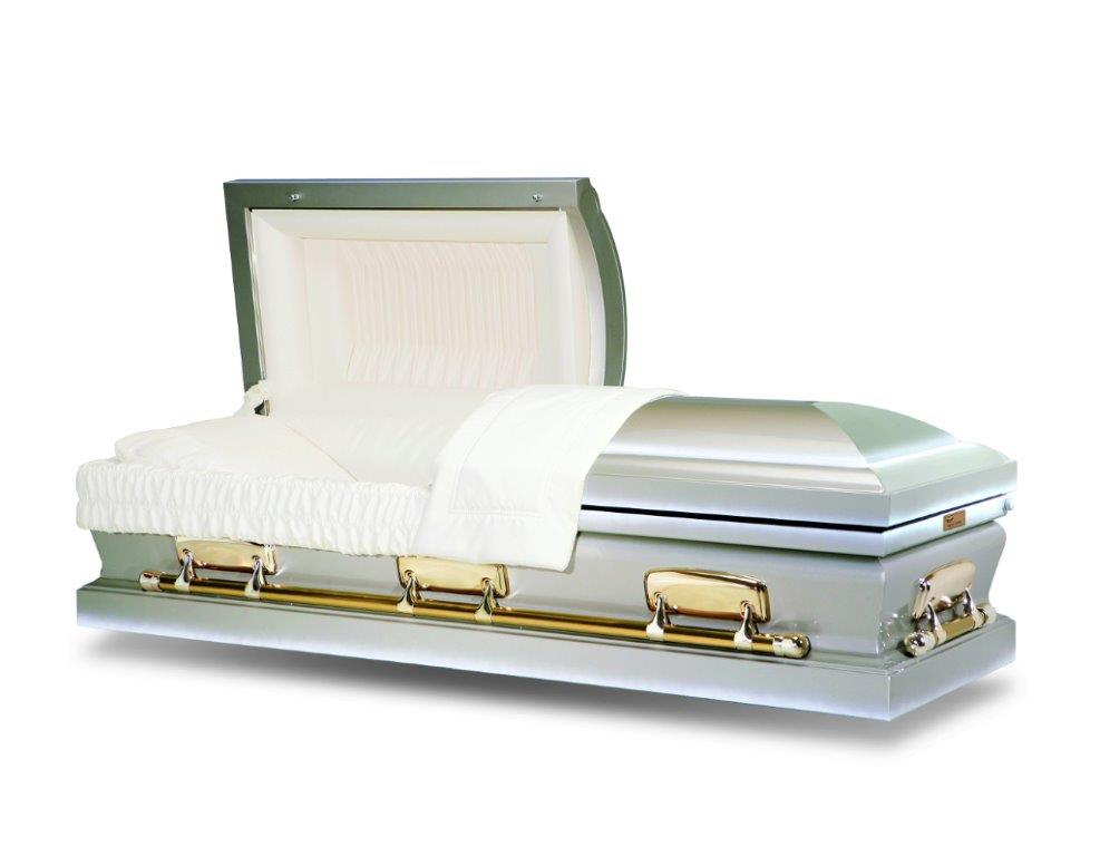 The Ashford white American casket has